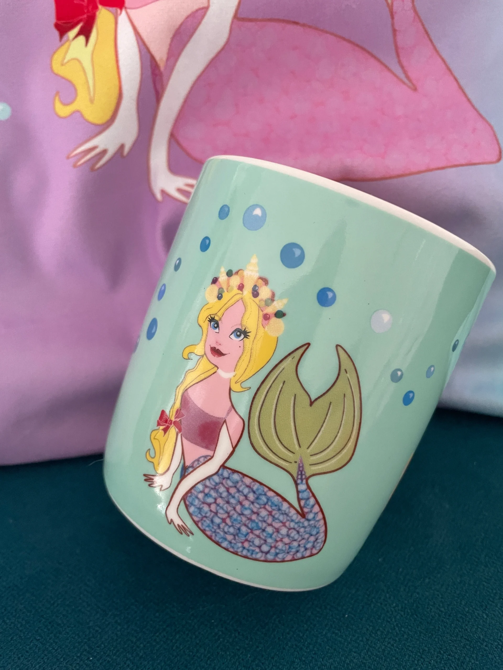 Découvrez nos tasses – mugs sirène en céramique. Des tasses finement peintes à la main et déclinées en plusieurs coloris : blanc, vert d’eau et bleu.