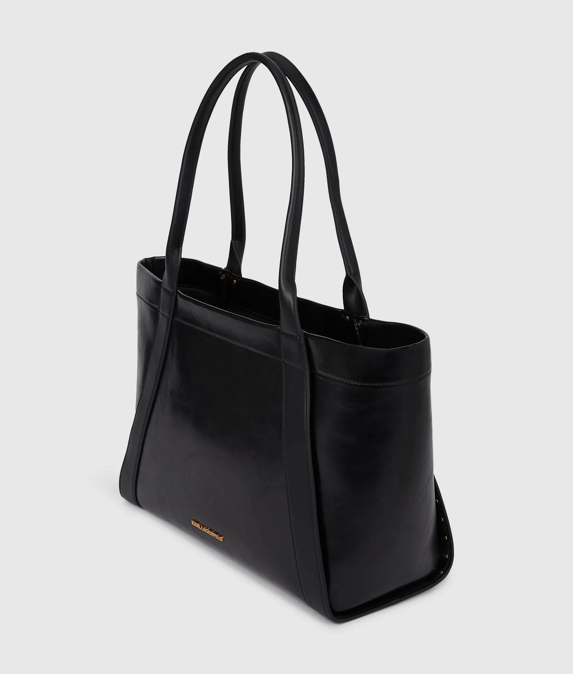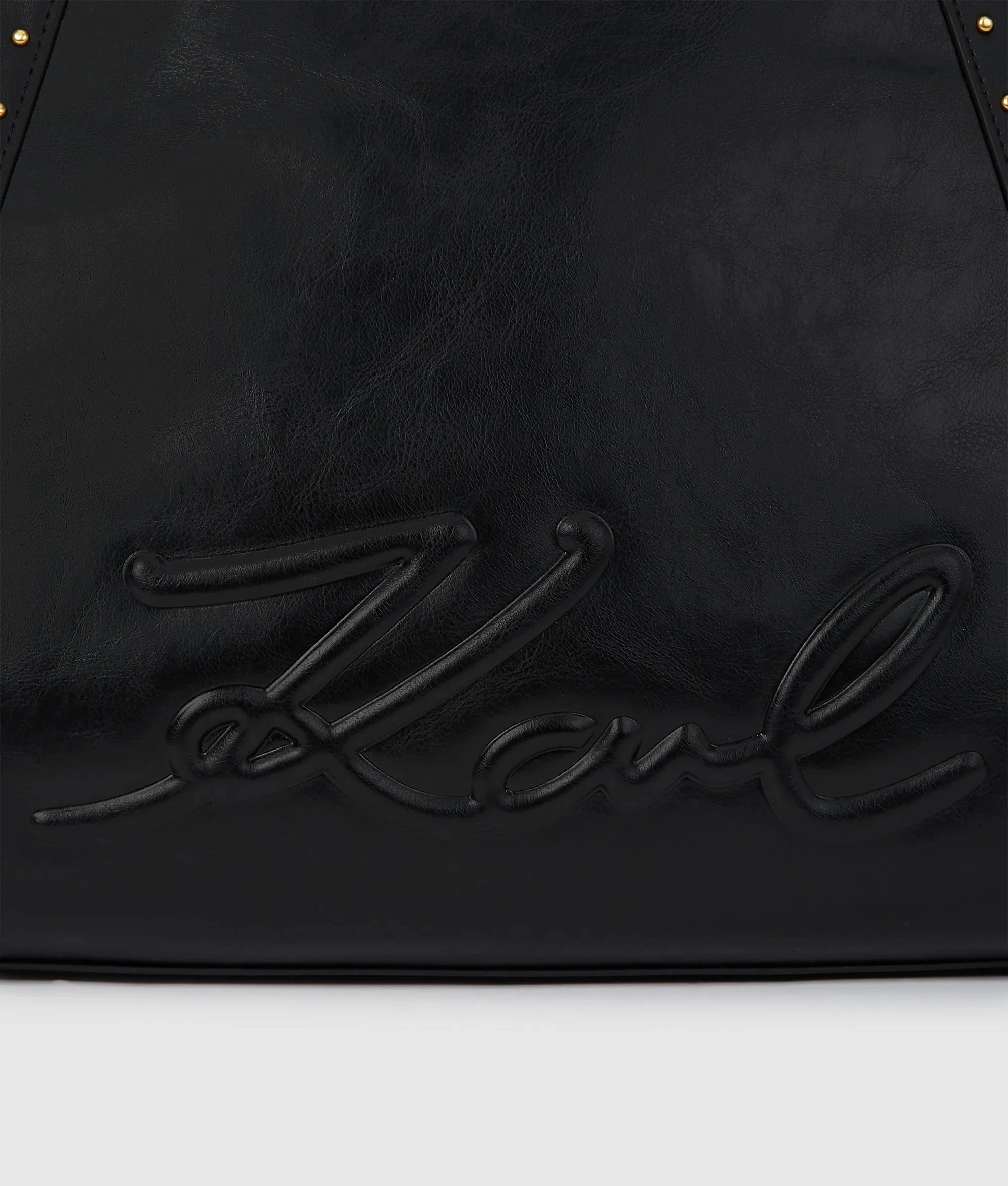Ce sac à main incarne l’élégance intemporelle avec son design minimaliste rehaussé de touches rock-chic. Ses dimensions généreuses offrent l’espace nécessaire pour vos essentiels du quotidien, tandis que les poignées doubles vous permettent de l’adapter à votre style – porté à la main ou glissé sur l’épaule. Les ornements cloutés et la signature Karl Lagerfeld discrètement intégré en font un accessoire à la fois sophistiqué et audacieux, parfait pour accompagner vos journées avec assurance.