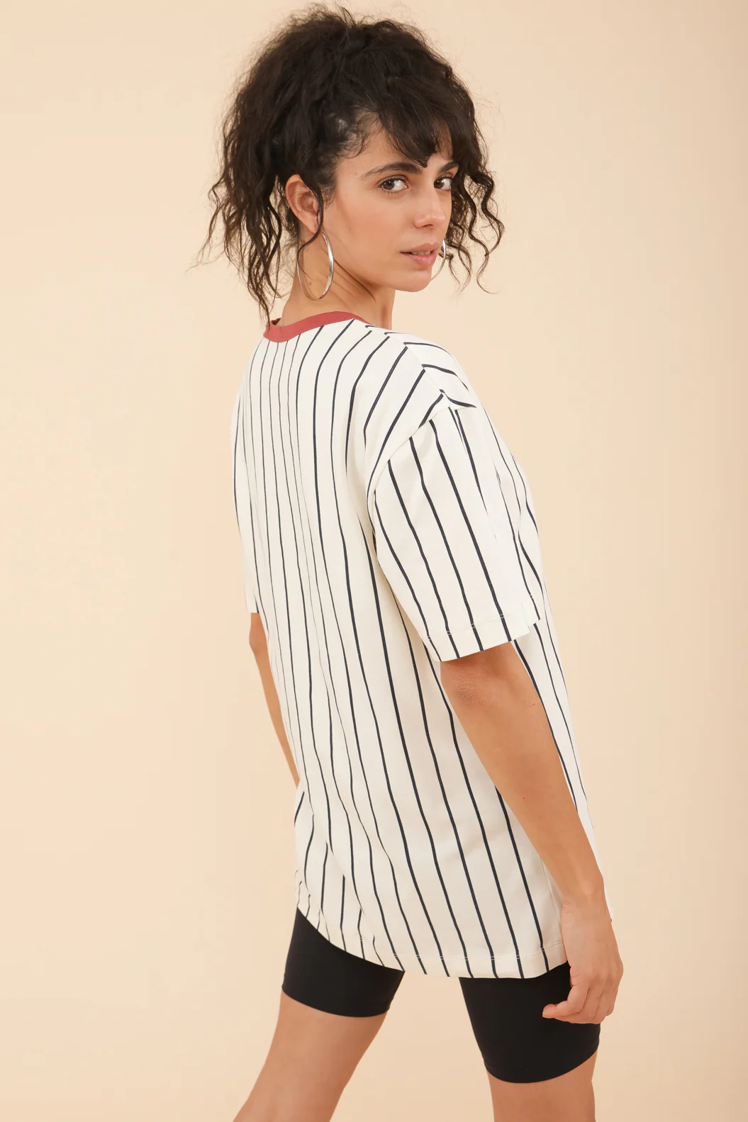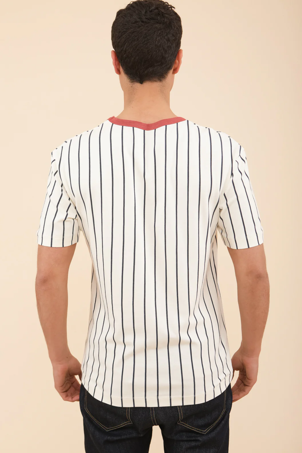 Notre nouveau t-shirt training, d’inspiration baseball avec ses fines rayures iconiques.