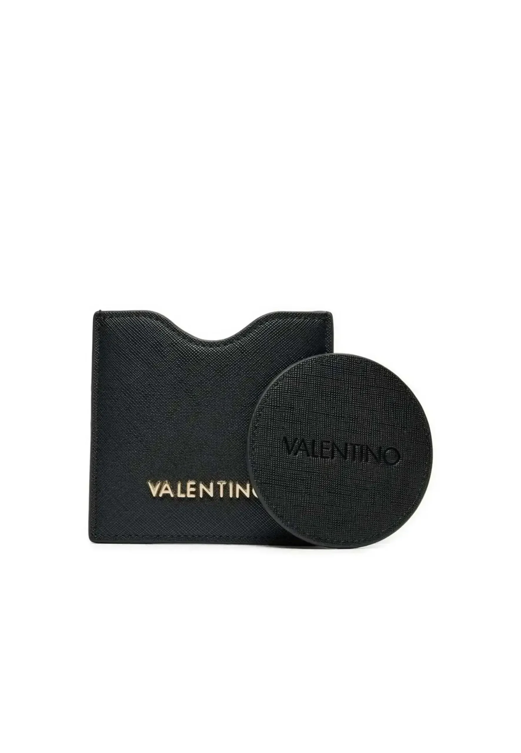 Ce coffret Valentino Bags transforme l’art d’offrir en expérience raffinée. La collection Avenue présente un ensemble harmonieux associant portefeuille compact et miroir de poche, sublimés par la finition polyuréthane noir signature de la maison italienne.