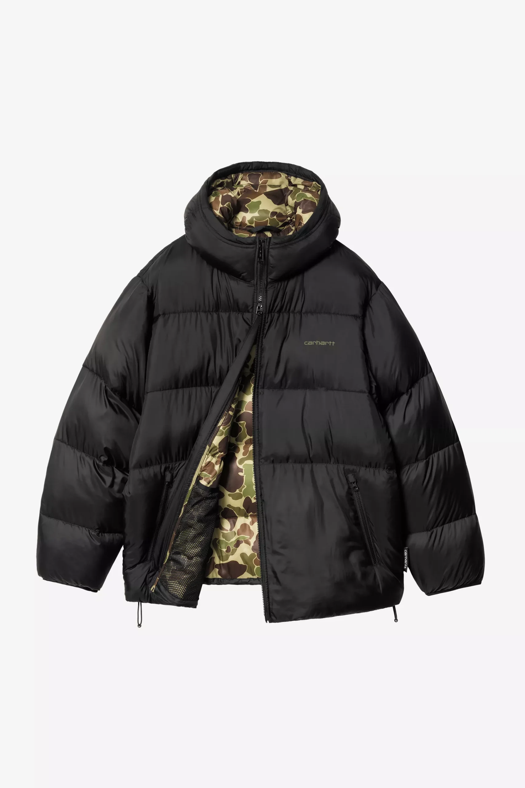 La doudoune ‘Toronto’ est confectionnée en ripstop de polyester léger. Déperlant, ce modèle est rembourré en duvet artificiel. La doublure affiche un motif camouflage allover. Une base et une capuche ajustables et le Flag Label complètent le design.