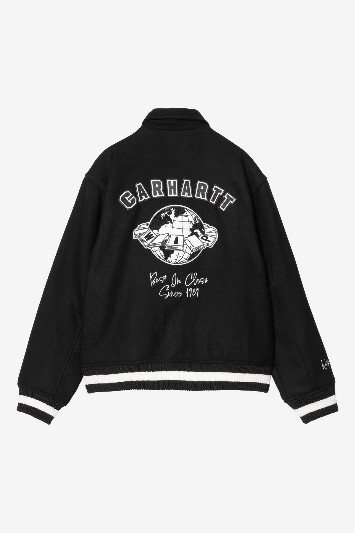 La veste universitaire ‘World Class Varsity’ est confectionnée en polyester-laine épaisse. Ce modèle dispose d’une doublure matelassée, de deux poches passepoilées avant et d’une poche poitrine intérieure. Elle affiche des broderies graphiques et des patchs.