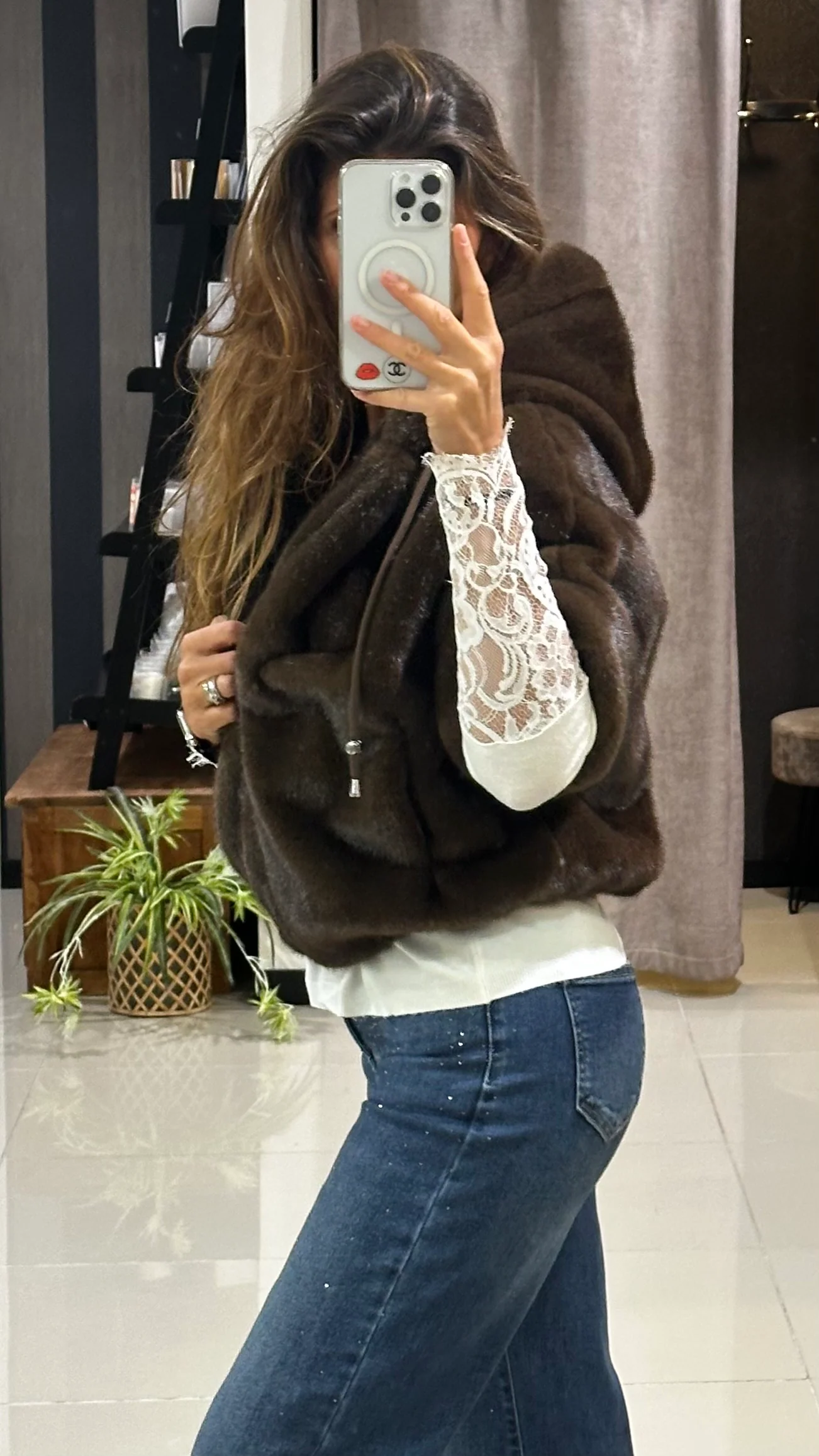 Douce et stylée, cette veste marron chocolat à capuche associe confort et modernité.